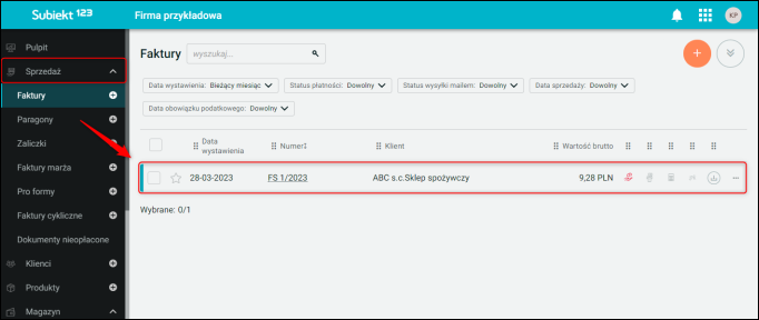 3. Zapisany dokument pojawi się na odpowiedniej liście w module Sprzedaż.