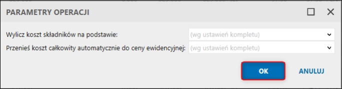 Program Subiekt nexo umożliwia zbiorcze przeliczenie kosztu składników kompletu. Aby to zrobić, należy: