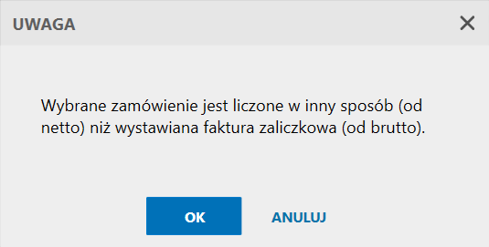 Subiekt nexo – Co zrobić w przypadku komunikatu" Wybrane zamówienie jest liczone w inny sposób (od netto) niż wystawiana faktura zaliczkowa (od brutto)"?