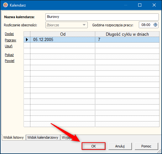 6. Zmodyfikowany kalendarz zapisać przyciskiem OK.