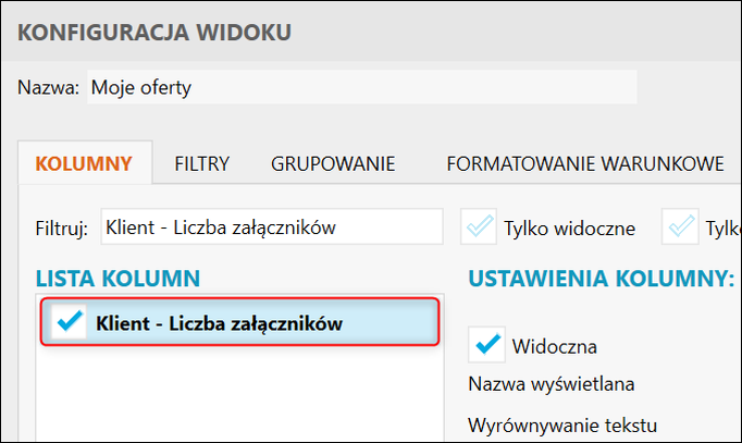 Gestor nexo – Jak do widoku Ofert dodać kolumnę Klient – Liczba załączników?