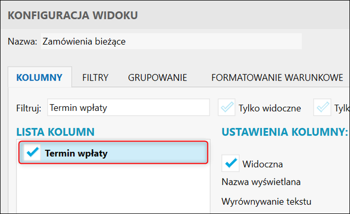 Subiekt nexo – Jak do widoku zamówień dodać kolumnę Termin wpłaty?