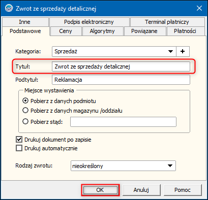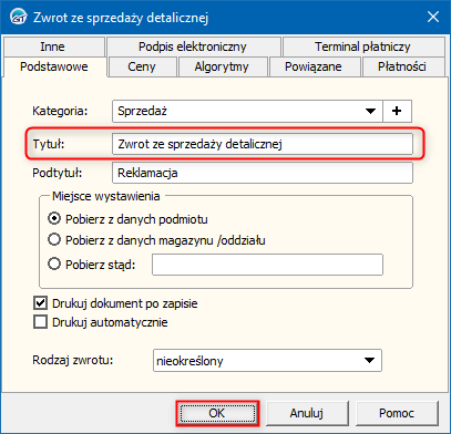 Subiekt GT – Jak ustawić domyślny tytuł zwrotu ze sprzedaży detalicznej?