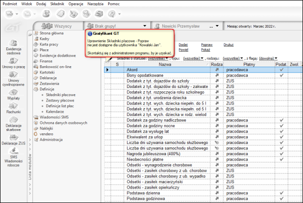 Gratyfikant GT – Jak zablokować użytkownikowi możliwość poprawiania składników płacowych?