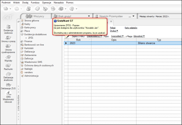 Gratyfikant GT – Jak zablokować użytkownikowi możliwość poprawiania ZFŚS?