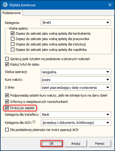 InsERT GT – Jak ustawić drukowanie po zapisie wpłaty bankowej?