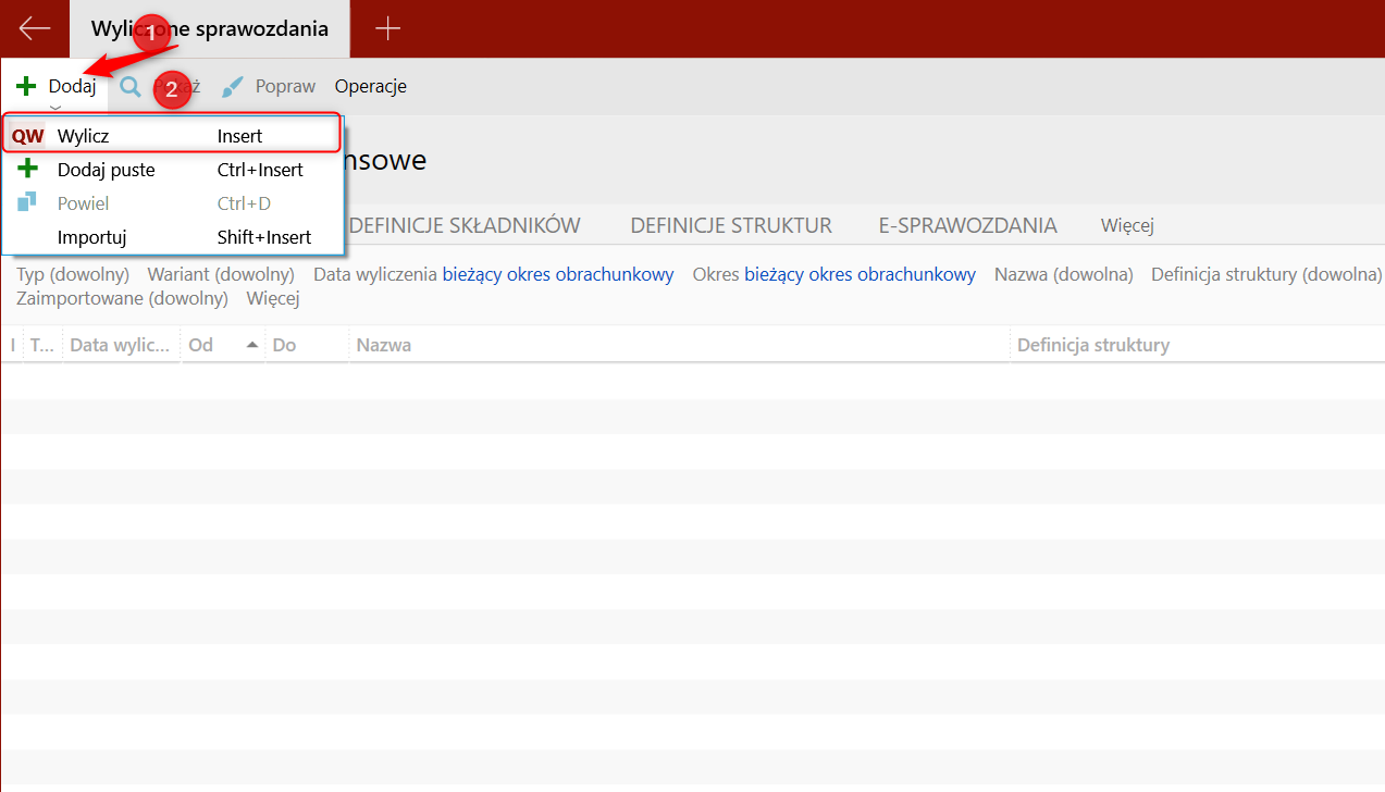 2. Kliknąć przycisk Dodaj – Wylicz.