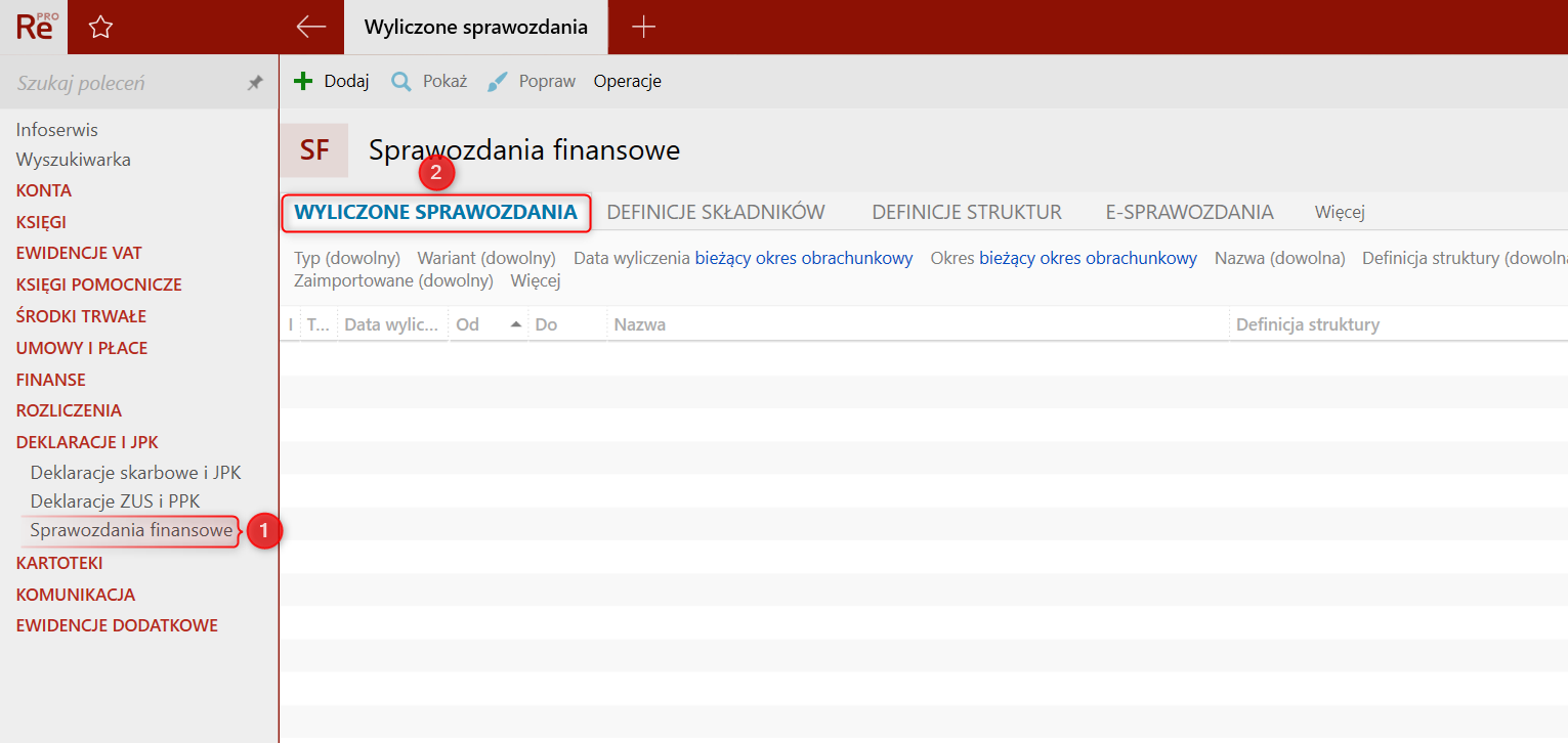 3. Wybrać okres obrachunkowy, dla którego wyliczane będzie sprawozdanie.