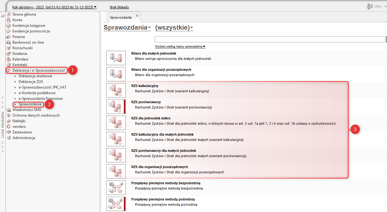 1. Przejść do modułu Deklaracje, JPK i Sprawozdania – Sprawozdania i wybrać jeden z dostępnych wariantów Rachunku zysków i strat.