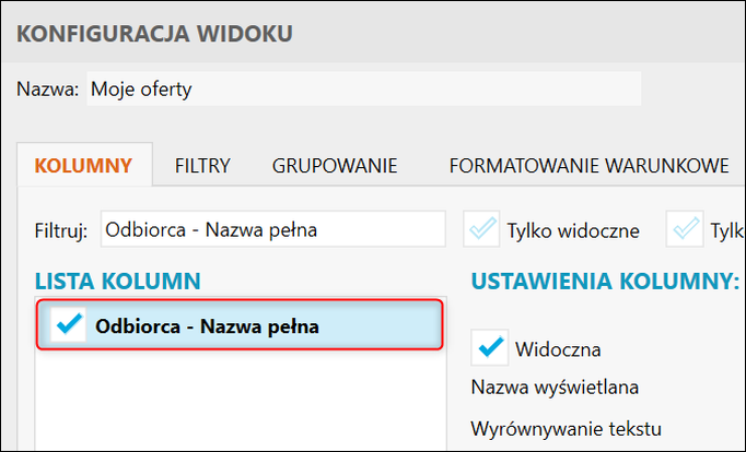 Gestor nexo – Jak do widoku Ofert dodać kolumnę Odbiorca – Nazwa pełna?