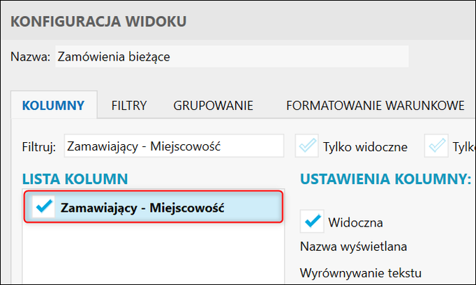 Aby pokazać kolumnę Zamawiający – Miejscowość, należy: