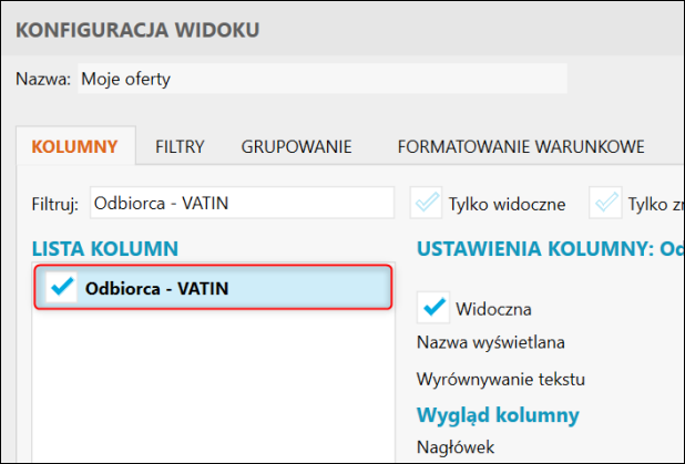 Gestor nexo – Jak do widoku Ofert dodać kolumnę Odbiorca – VATIN?