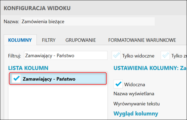 Aby pokazać kolumnę Zamawiający – Państwo, należy: