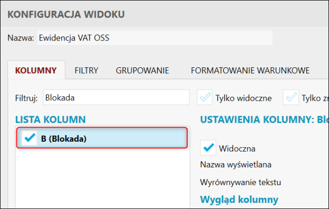 Rewizor nexo – Jak do widoku Ewidencji VAT OSS dodać kolumnę Blokada?