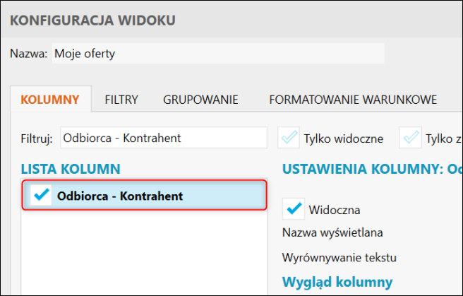 Gestor nexo – Jak do widoku Ofert dodać kolumnę Odbiorca – Kontrahent?