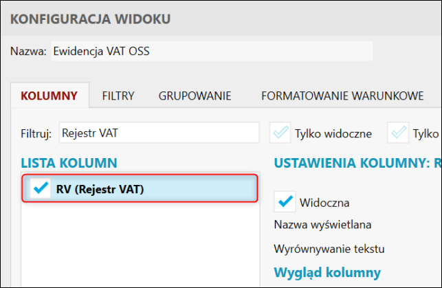Rewizor nexo – Jak do widoku Ewidencji VAT OSS dodać kolumnę Rejestr VAT?