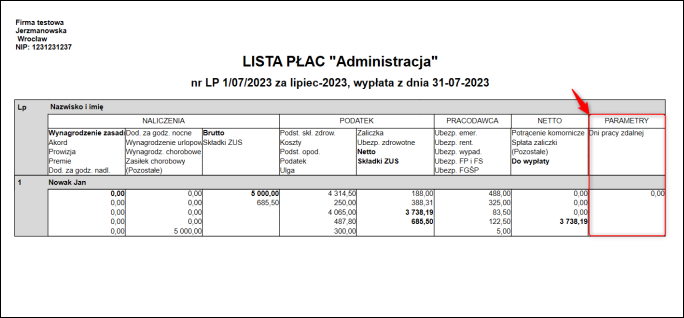 Gratyfikant nexo – Jak do wydruku Listy płac dodać informację o liczbie dni pracy zdalnej?
