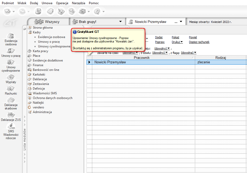 Gratyfikant GT – Jak zablokować użytkownikowi możliwość poprawiania umów cywilnoprawnych?