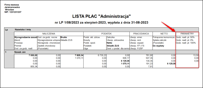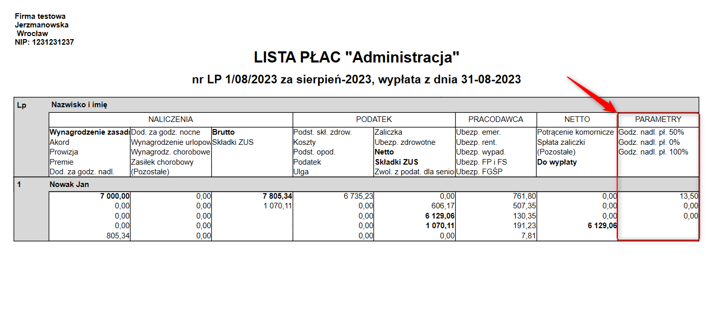 Gratyfikant nexo – Jak do wydruku Listy płac dodać informację o ilości godzin nadliczbowych płatnych?
