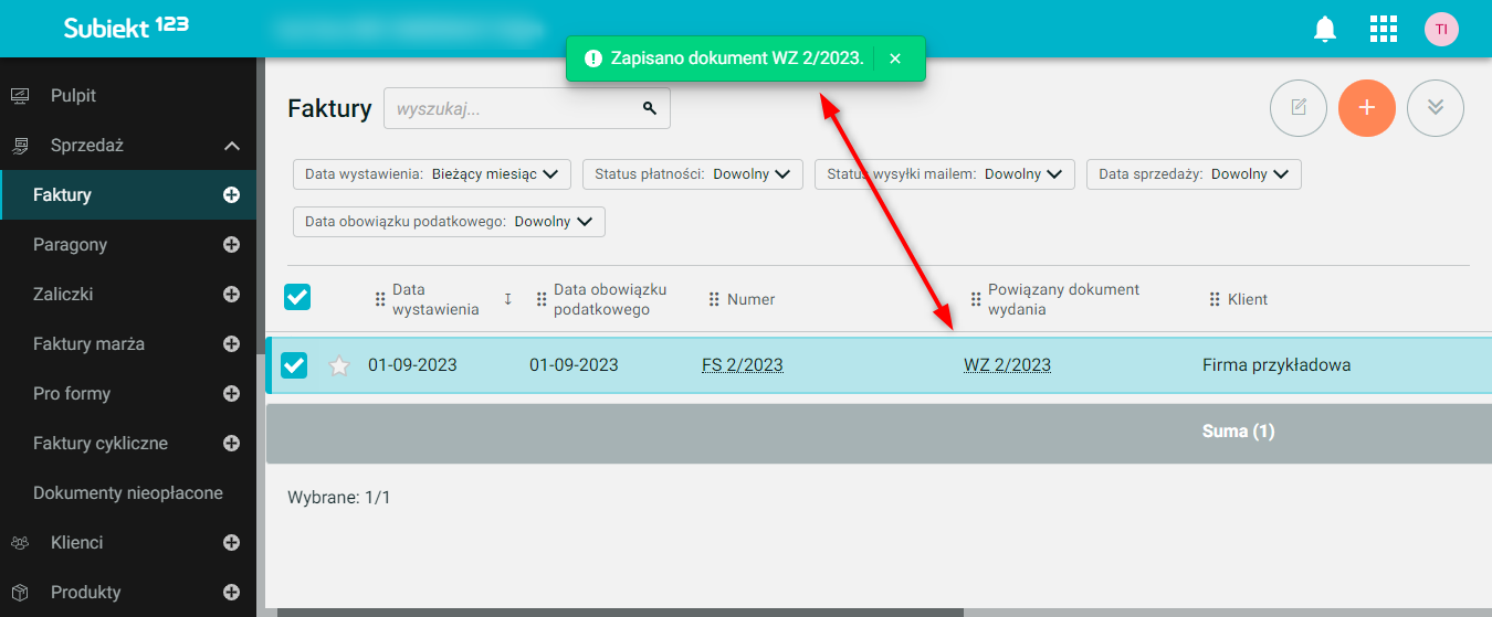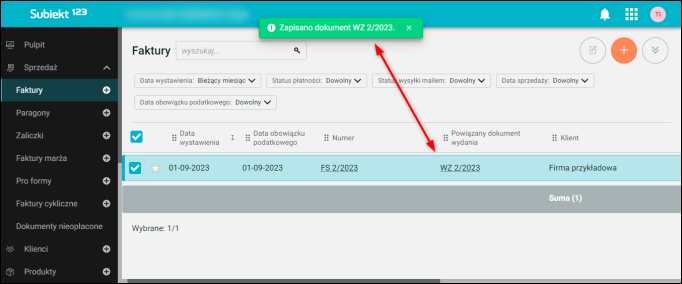 2. Skutek magazynowy dokumentu zostanie zmieniony na wywołaj i utworzony zostanie odpowiedni dokument magazynowy.