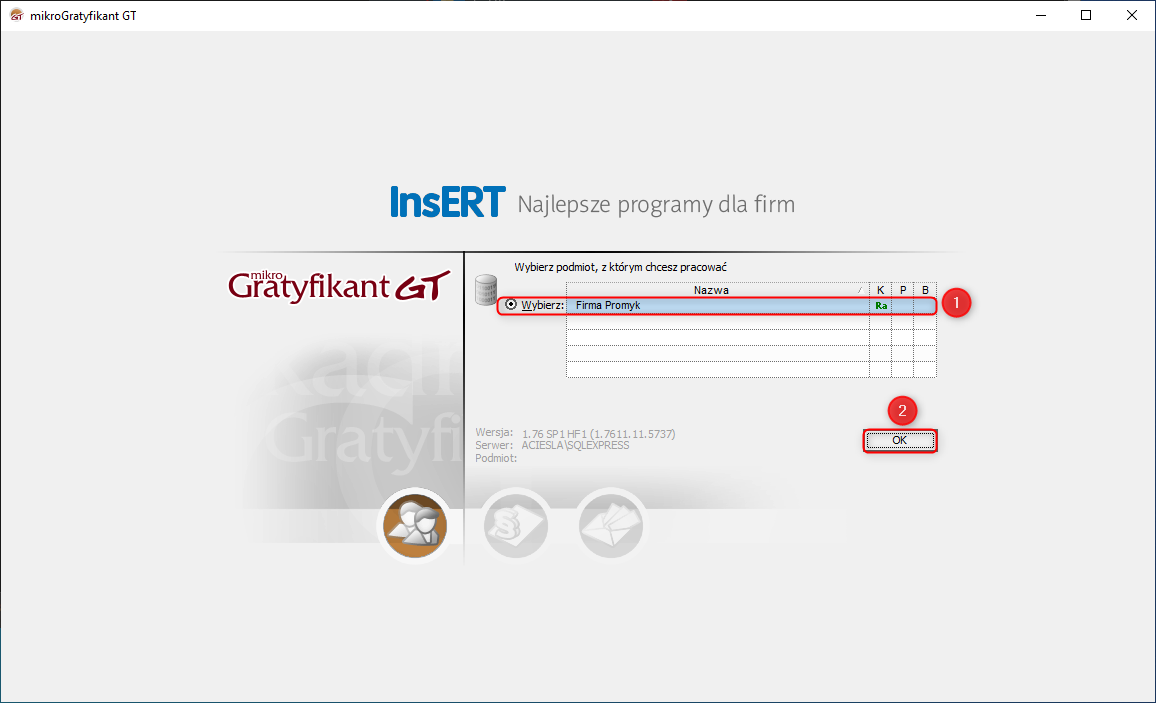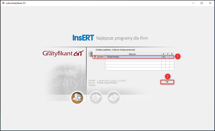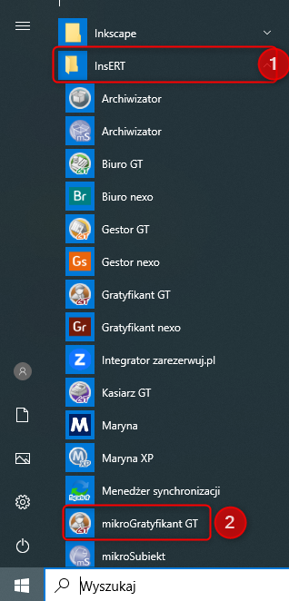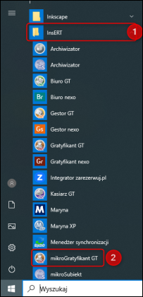 1. Odszukać i uruchomić menu Start – Programy/Wszystkie aplikacje (w zależności od wersji systemu Windows) – InsERT – mikroGratyfikant GT.