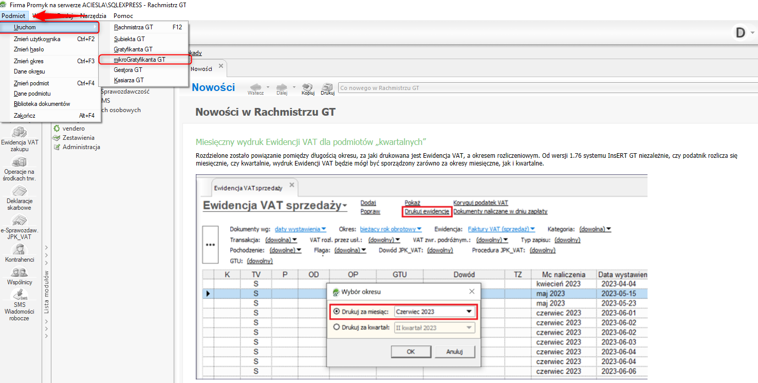 Alternatywną metodą jest uruchomienie podmiotu w programie Rachmistrz GT lub Rewizor GT. I uruchomić mikroGratyfikanta klikając górne menu Podmiot – Uruchom – mikroGratyfkanta GT.