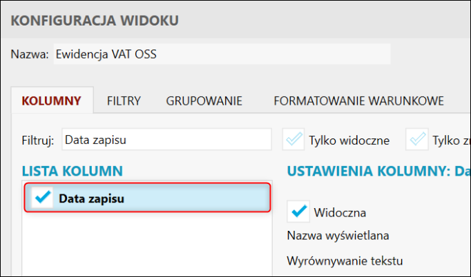 Rewizor nexo – Jak do widoku Ewidencji VAT OSS dodać kolumnę Data zapisu?