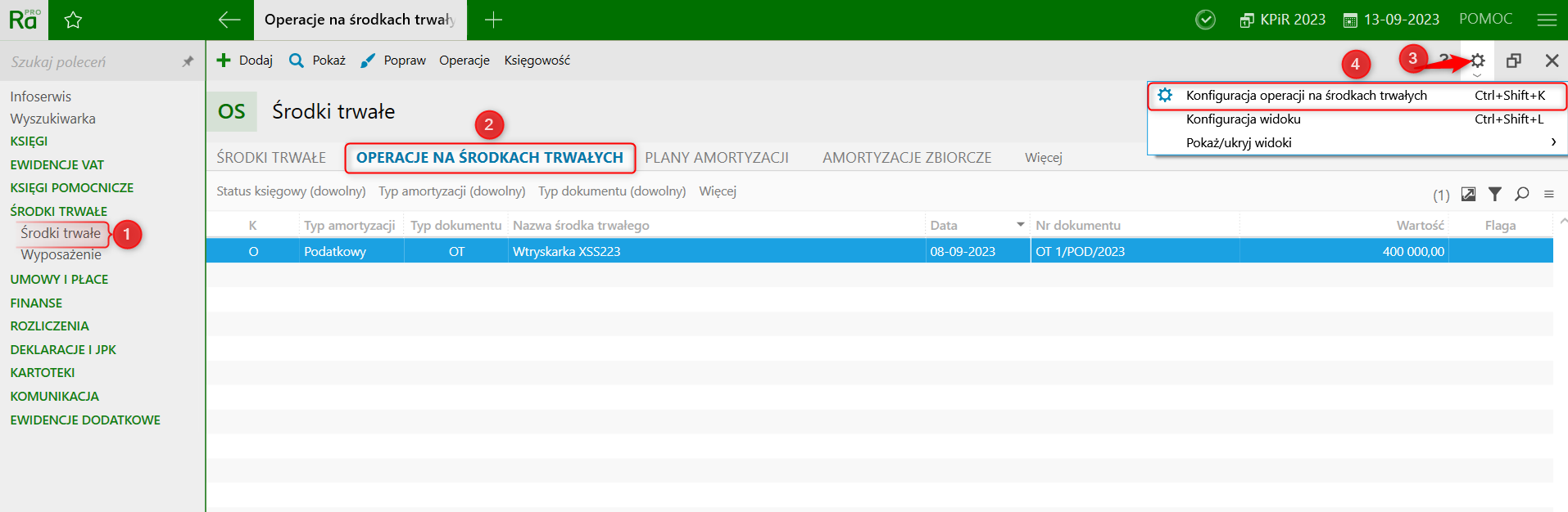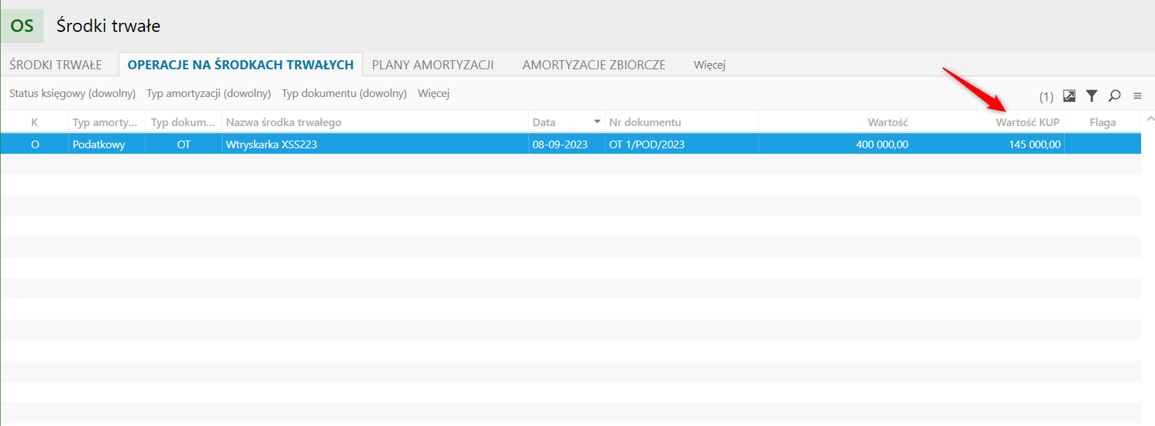 W widoku Operacje na środkach trwałych zostanie wyświetlona stosowna informacja.