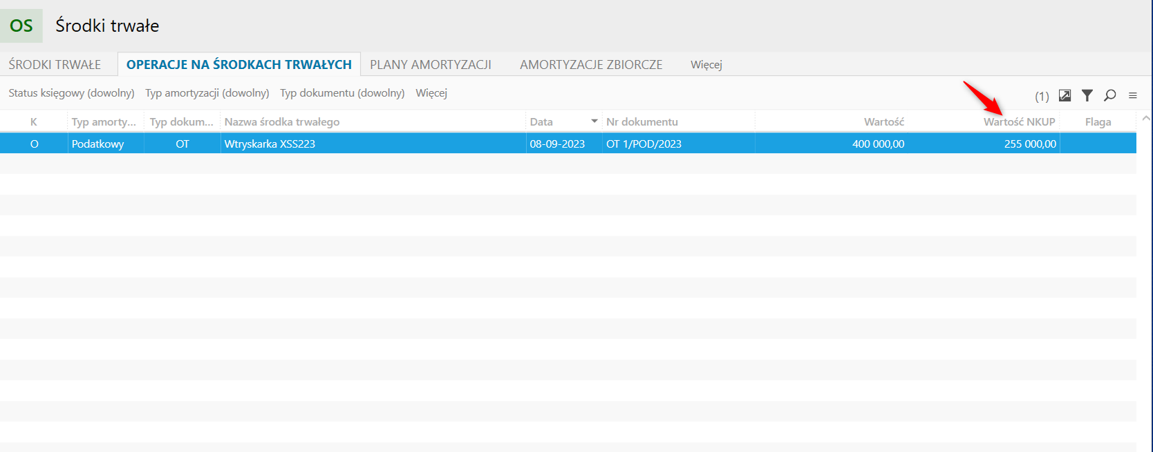W widoku Operacje na środkach trwałych zostanie wyświetlona stosowna informacja.