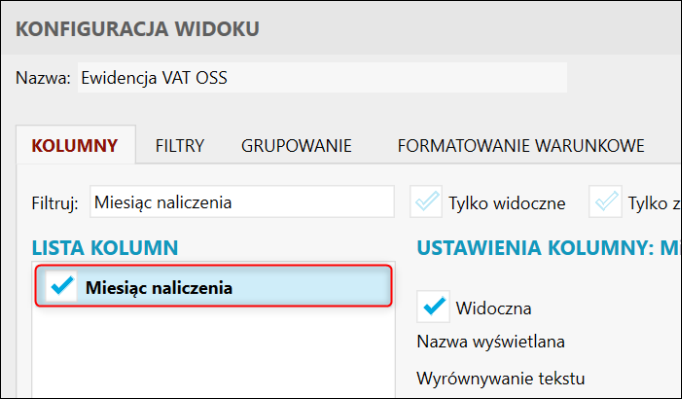 Rewizor nexo – Jak do widoku Ewidencji VAT OSS dodać kolumnę Miesiąc naliczenia?
