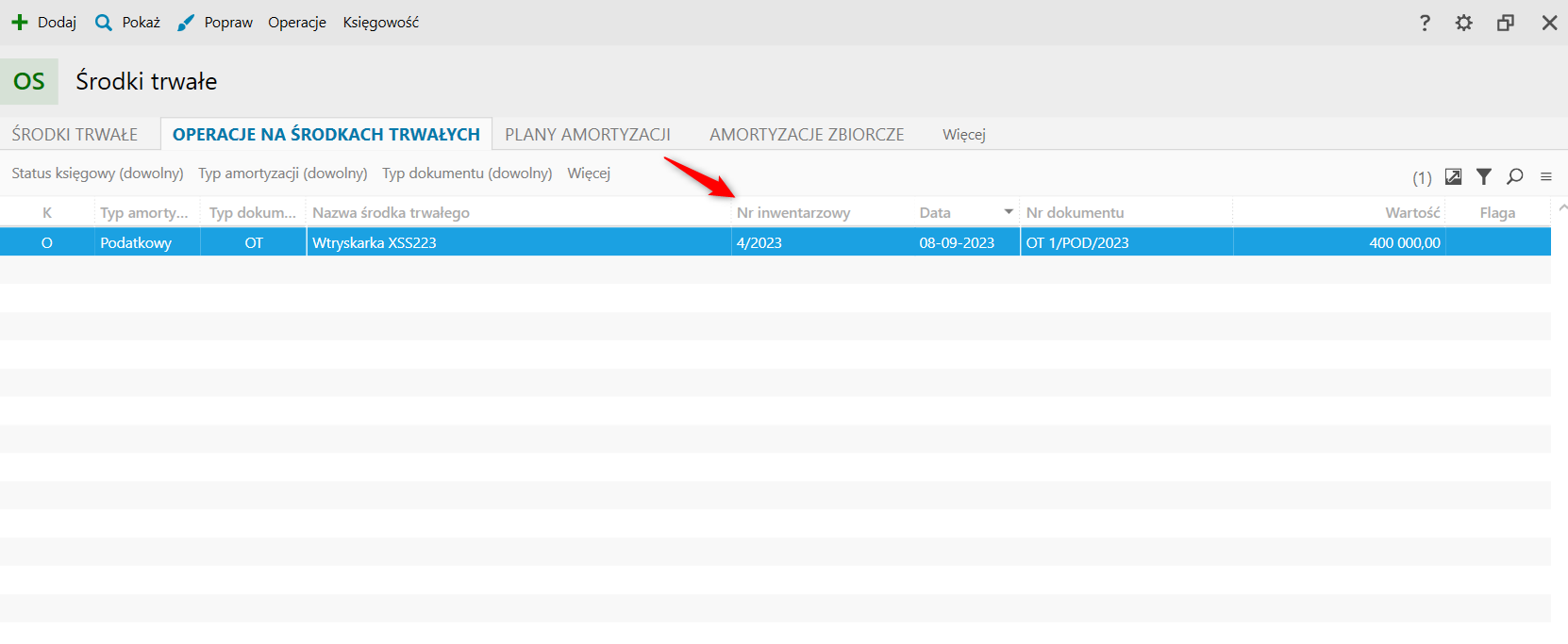 W widoku Operacje na środkach trwałych zostanie wyświetlona stosowna informacja.