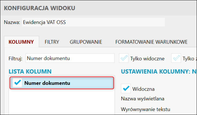 Rewizor nexo – Jak do widoku Ewidencji VAT OSS dodać kolumnę Numer dokumentu?