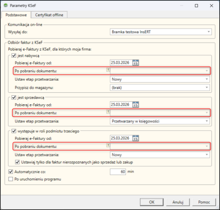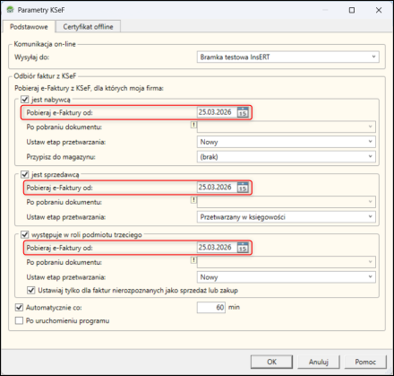 4. Określić datę, od której dokumenty danego typu powinny być pobierane.
