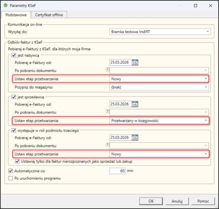 7. Dla dokumentów, na których firma występuje w roli podmiotu trzeciego można określić ustawianie etapu przetwarzania jedynie dla faktur nierozpoznanych jako sprzedaż lub zakup.