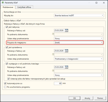 8. W przypadku faktur zakupu można je również automatycznie przypisać do wybranego magazynu.