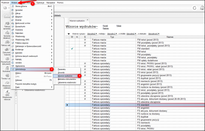 1. Przejść do modułu Administracja – Wzorce wydruku.