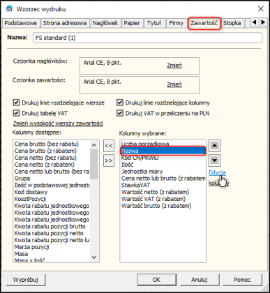 InsERT GT – Jak zmienić wyrównanie tekstu w nagłówku kolumny na wydruku dokumentu?