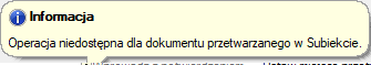 3. Faktury z etapem przetwarzania Przetwarzana w Subiekcie będą miały zablokowaną możliwość księgowania/dekretowania oraz zmiany danych dokumentu do momentu zmiany Etapu na Księgowość lub wyłączenia przypisania (opcja Nie przypisuj).