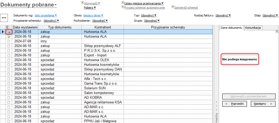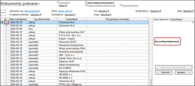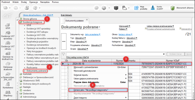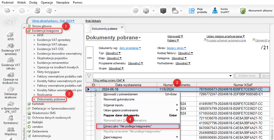 Rachmistrz i Rewizor GT – Jak ustawić dokument pobrany z KSeF jako niepodlegający księgowaniu?