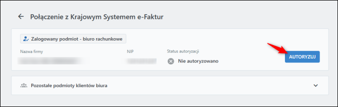 5. Odnaleźć odpowiedni podmiot i kliknąć AUTORYZUJ.