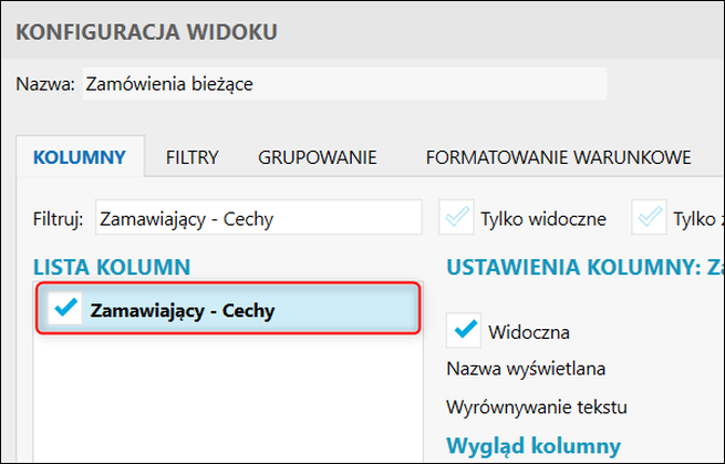 Subiekt nexo – Jak do widoku zamówień dodać kolumnę Zamawiający – Cechy?