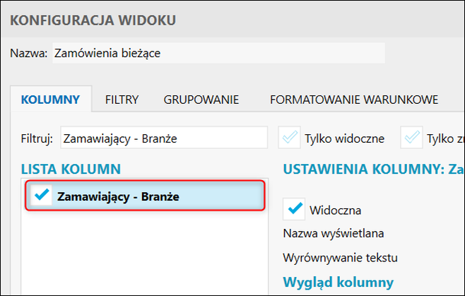 Aby pokazać kolumnę Zamawiający – Branże, należy: