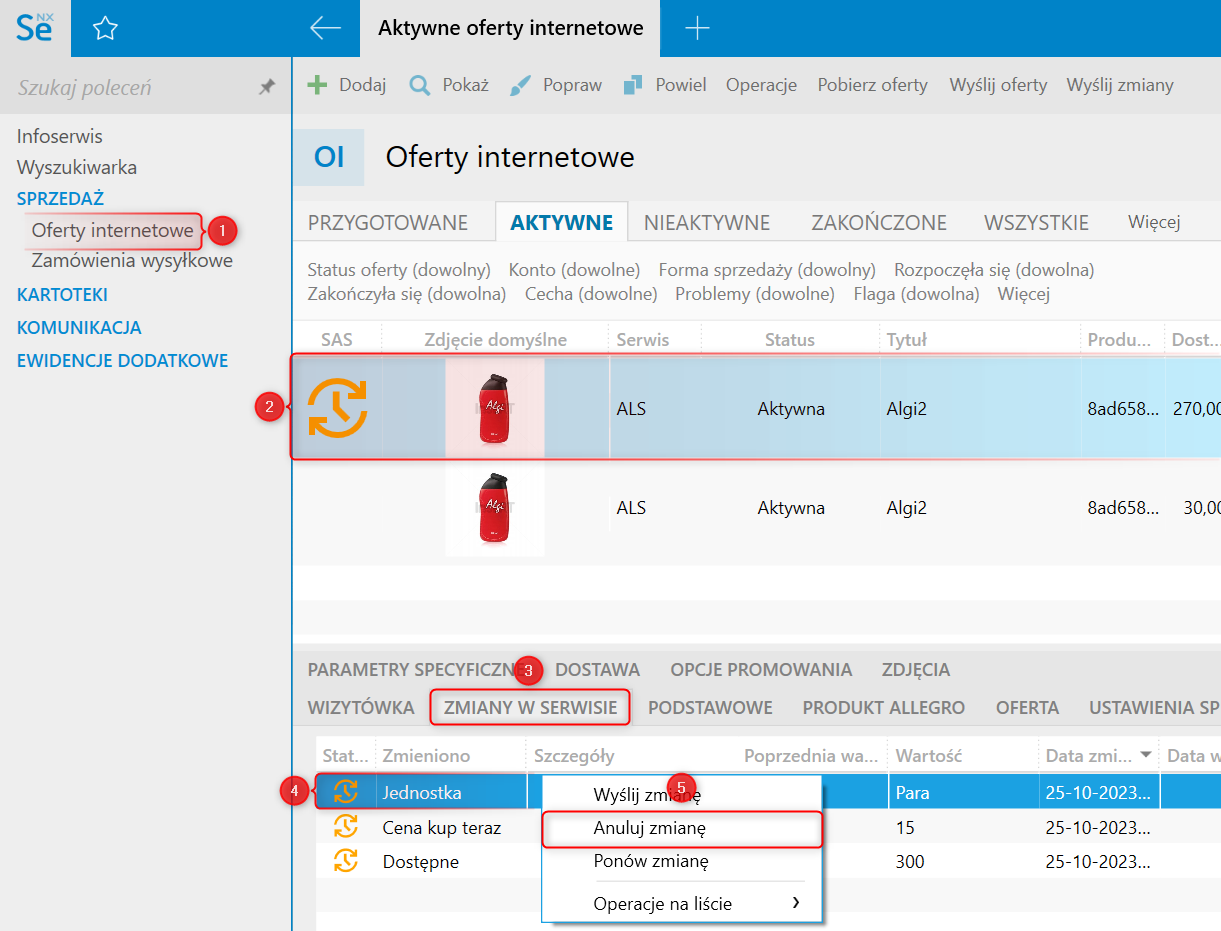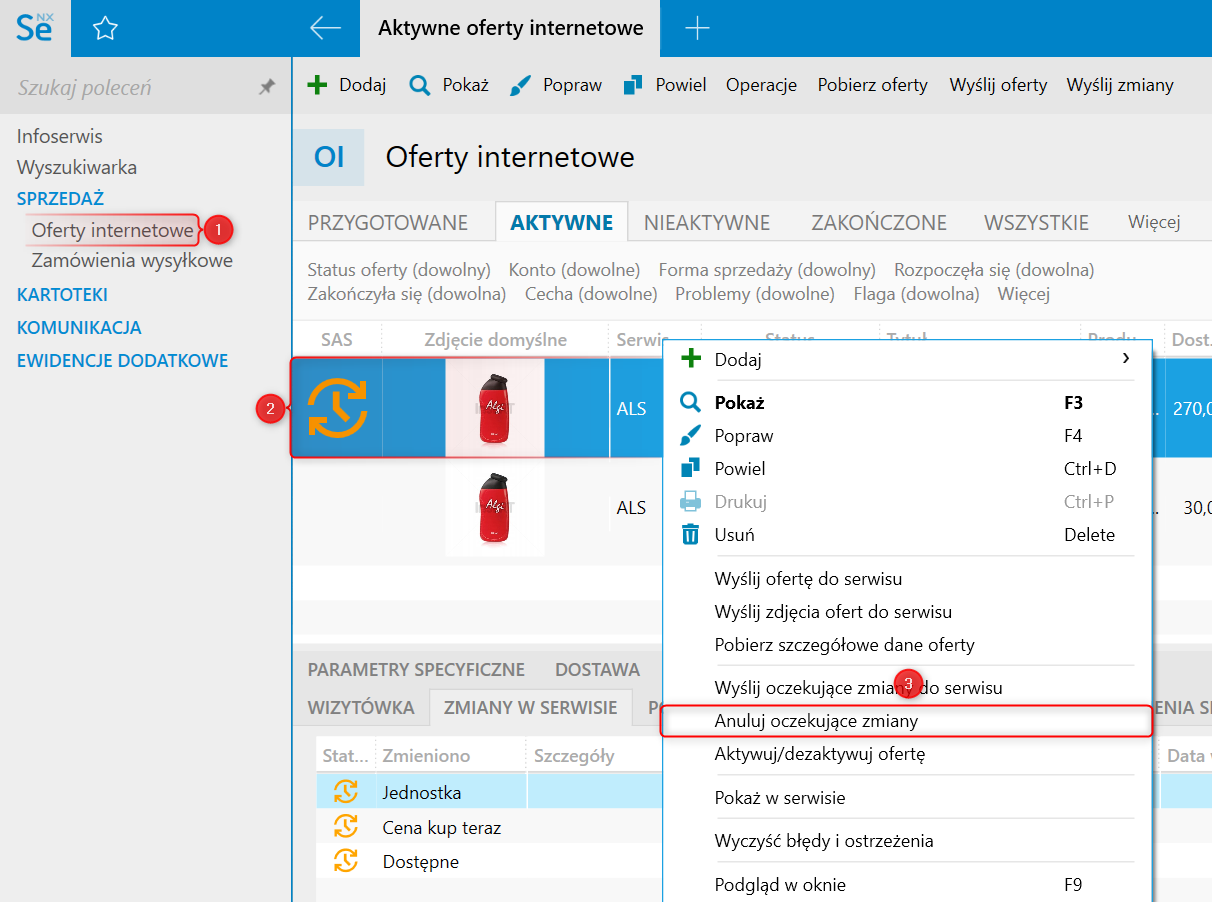 Sello NX – Jak anulować oczekujące zmiany w ofertach?