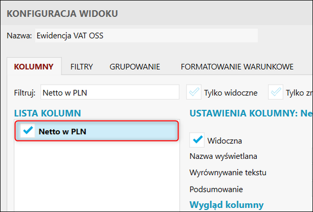 Rewizor nexo – Jak do widoku Ewidencji VAT OSS dodać kolumnę Netto w PLN?
