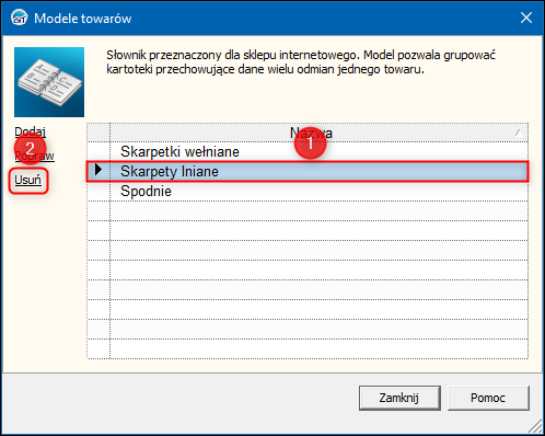 2. W oknie, które się wyświetli zaznaczyć model, który ma zostać usunięty i kliknąć opcję Usuń.