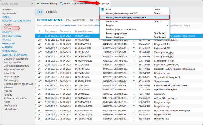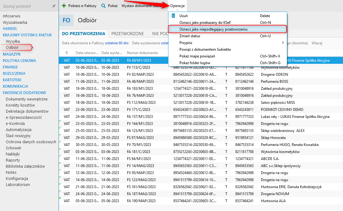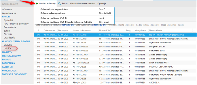 Program Subiekt nexo pozwala użytkownikowi korzystać z dwóch trybów odbioru e-Faktur: