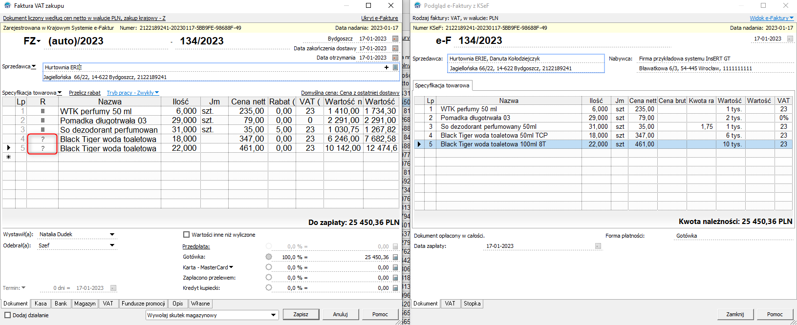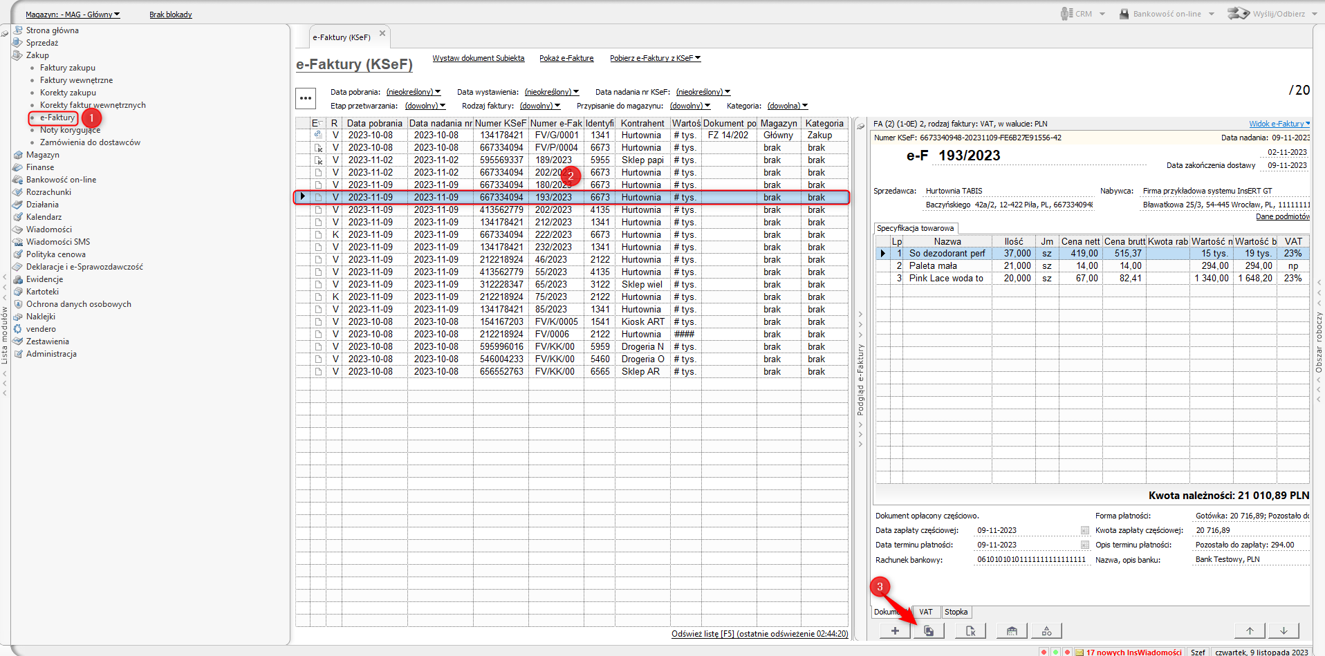 W przypadku, gdy dane zostały wprowadzone do systemu na podstawie otrzymanej faktury (np. w formie papierowej), system Subiekt GT umożliwia powiązanie tradycyjnej faktury z fakturą KSeF. Więcej informacji na ten temat znajduje się w artykule e-Pomocy technicznej​: