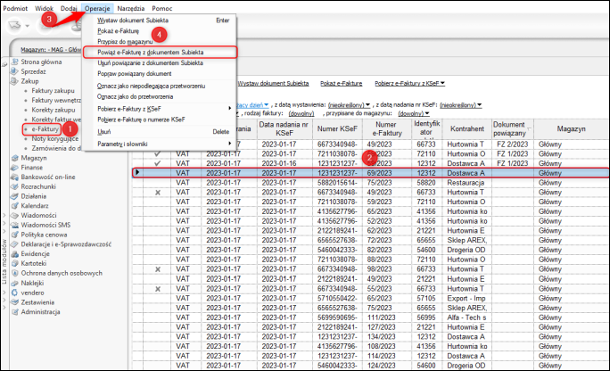 Operację powiązania e-Faktury z dokumentem Subiekta, można uruchomić z poziomu podglądu e-Faktury.