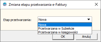 Zmianę etapu przetwarzania można również wywołać z poziomu podglądu e-Faktury.