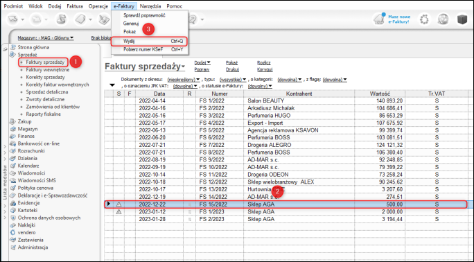Więcej informacji na temat wysyłki dokumentów do KSeF znajduje się w poniższym artykule e-Pomo​cy technicznej: